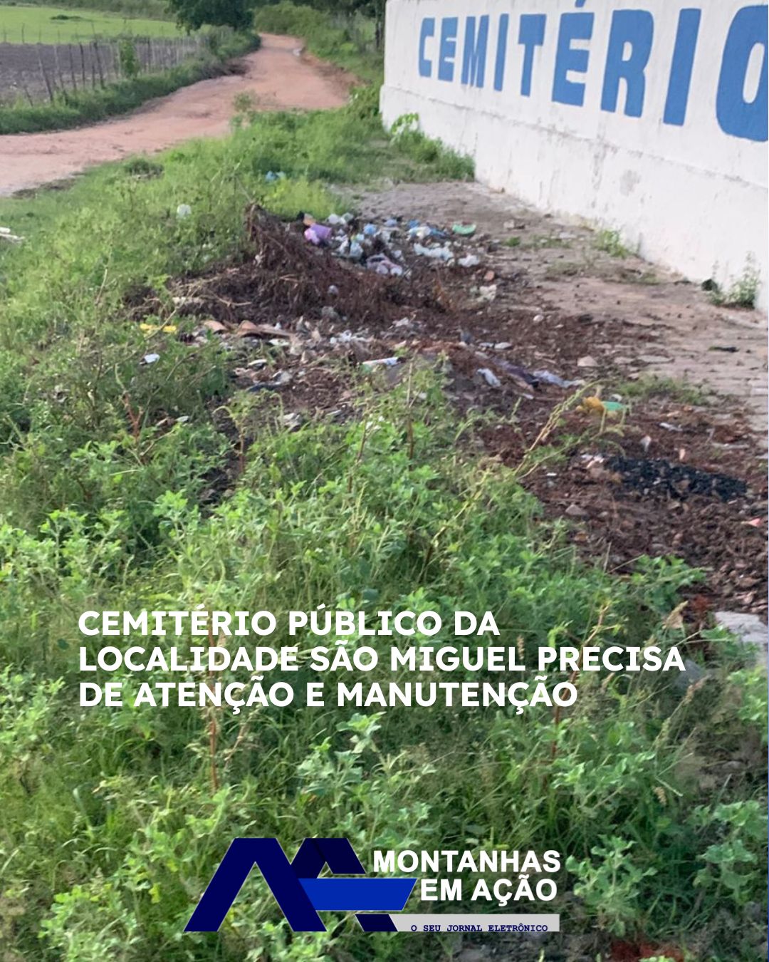 O Portal Montanhas em Ação vem a público, neste sábado (04), chamar a atenção das autoridades competentes para a situação do cemitério público da localidade de São Miguel no município de Montanhas, especialmente no que diz respeito à limpeza, conservação e manutenção desse espaço tão importante para a memória e o respeito às famílias.