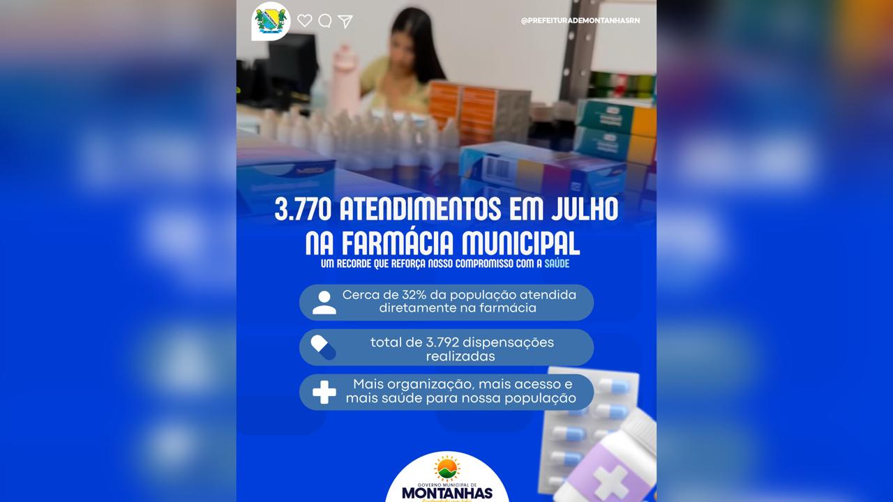 O Município de Montanhas, por meio da Secretaria de Saúde, apresenta o relatório de atendimentos da Farmácia Básica Municipal referente à competência do mês de julho de 2025. Os dados apontam um total de 3.770 usuários atendidos, resultando em 3.792 dispensações de medicamentos realizadas no período.